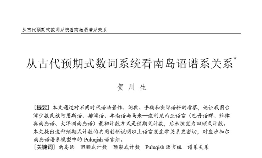 贺川生在《民族语文》发文:从古代预期式数词系统看南岛语谱...